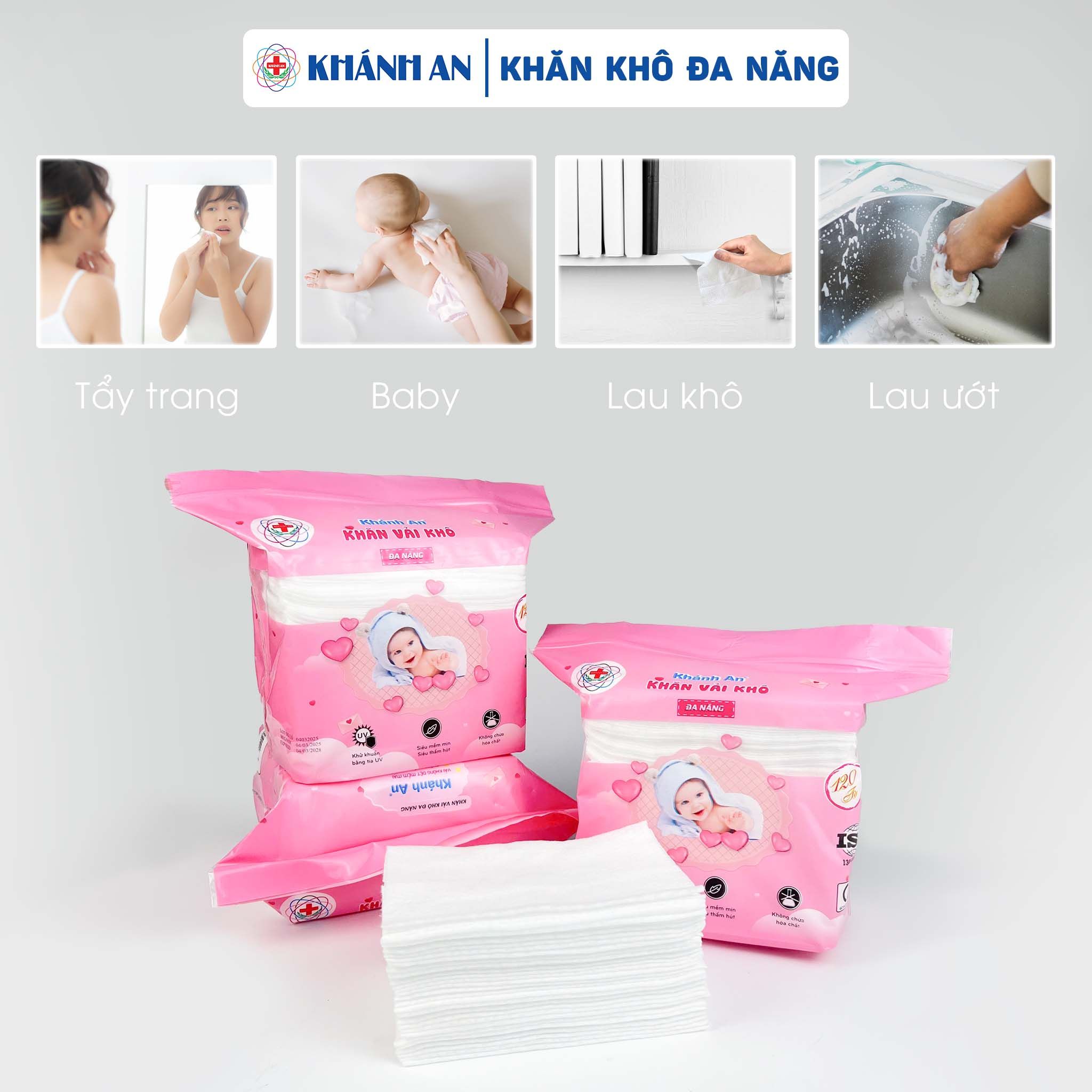 Khăn Vải Khô Khánh An Đa Năng Dạng Túi là sản phẩm khăn khô đa năng - tiện lợi - tiết kiệm. Sản phẩm được làm từ vải không dệt mềm dai được kháng khuẩn bằng tia UV, sản xuất trên dây chuyền tự động và hiện đại. Khăn khô đa năng Khánh An: