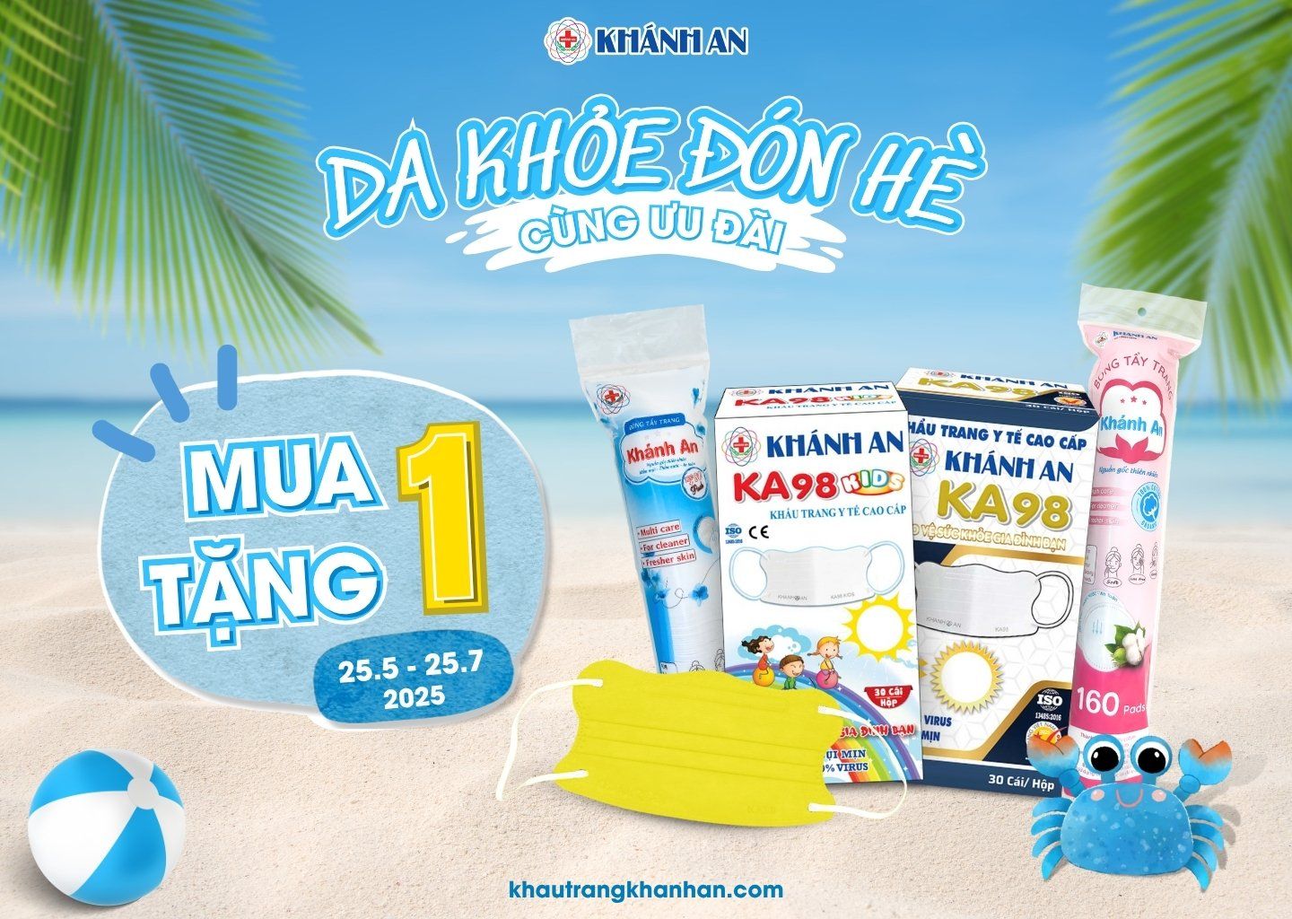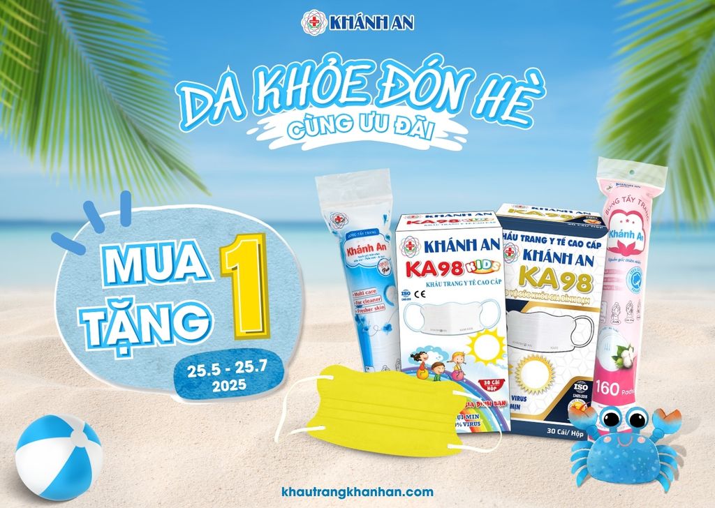 → Từ ngày 25.5.2025, Khẩu trang Khánh An áp dụng nhiều ưu đãi cho sản phẩm KA98 và KA98 Kids